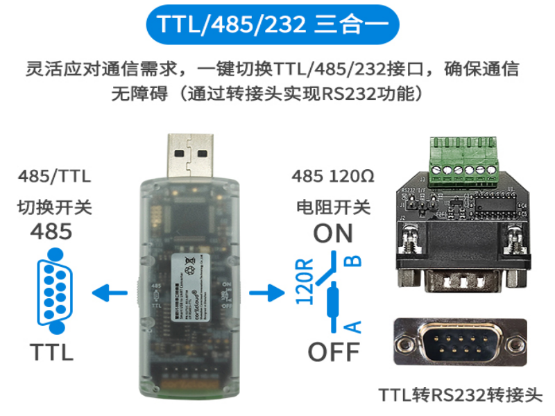 產品規格:串口調試工具一鍵切換485/232/TTL接口
